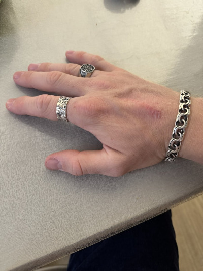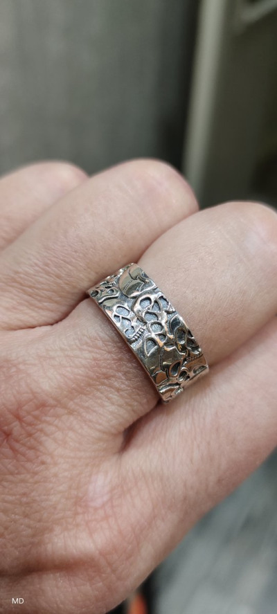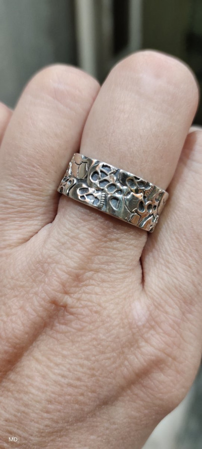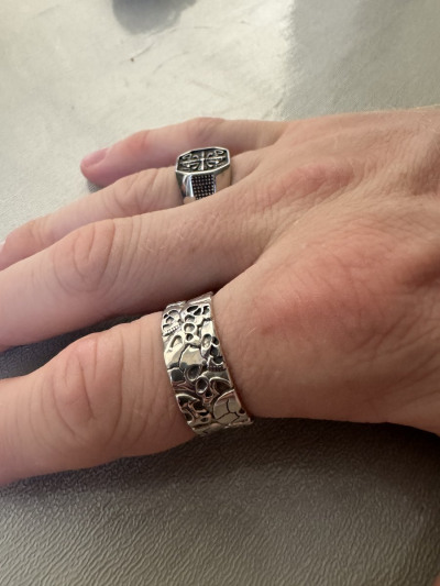 Недорогое, прочное серебряное кольцо, с черепушками, выбрал специально на указательный палец, приятно сидеть и рассматривать его. По виду конечно не для всех, сам люблю обычную классику, а тут захотелось необычных украшений)
