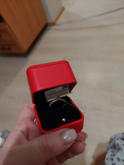 Красивое колечко, нежное, аккуратное, изначально хотела с гранатом, но это больше понравилось Камень не такой яркий как на фото, значительно нежнее (это +)