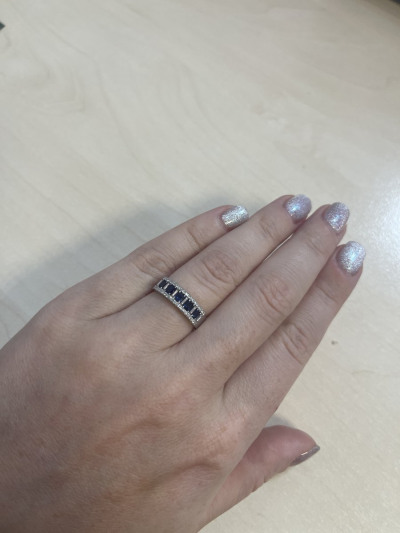 Кольцо прекрасное, мое любимое сочетание камней и белого золота. Купила кольцо р.17,5, хотя обычно на среднем пальце ношу размер 17. Спасибо магазину Санлайт за возможность приобрести такое прекрасное украшение за приемлемую цену.