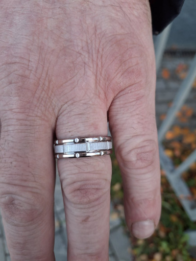 Я его как купил у вас так ч ним и хожу на втором слева пальце правой ✋🖐👋, мне очень нравится, блестит очень круто