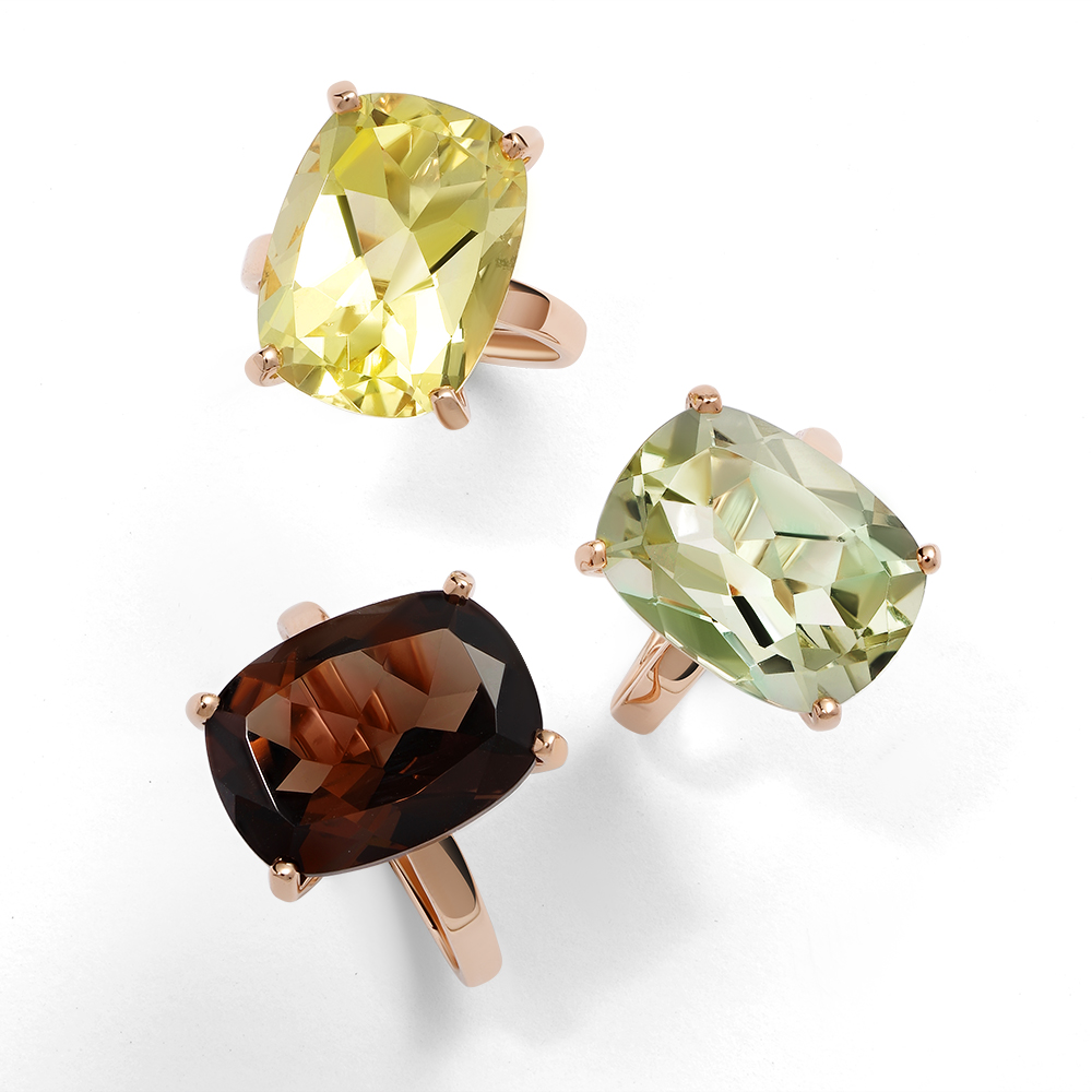 Золотое кольцо с кварцами природными