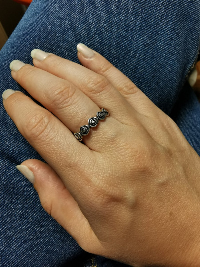У меня в последнее время бзик на розочки ,все что вижу с розочками беру .Когда увидела колечко с розочками,конечно же купила. Прелесть.