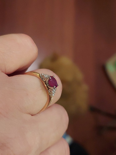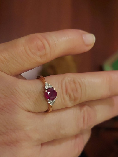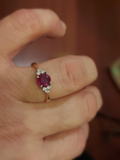 Восхитительное кольцо, в реальности намного красивее и ярче. Рубин прекрасного качества и идеального цвета, классическая "капля голубиной крови". Бриллианты очень удачно подобраны по размеру и форме, прекрасно обрамляют и подчеркивают рубин. Большое спасибо нашим российским мастерам за радость и красоту! Очень советую дамам, чей камень- рубин.