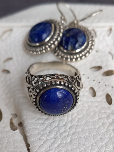 Насыщенность синевы в природном минерале просто поражает. Камень лазурит - оберег ещё с библейских времён. Кольцо стало одним из любимых ювелирных изделий. Оправа кольца выполнена под старину, с очень ажурным рисунком.