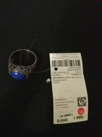 Красивое кольцо с ярко-синим лазуритом в ажурном серебряном обрамлении. Мне очень нравится! Спасибо Sunlight☀