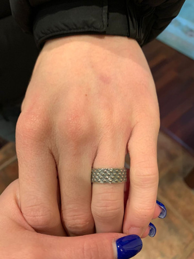 Очень крутое кольцо! Брала маме по акции, теперь себе такое хочу. Достаточно широкое, смотрится супер! Рекомендую