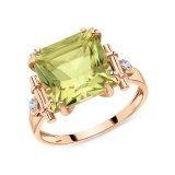 Золотое кольцо с фианитами и кварцем лимонным природным