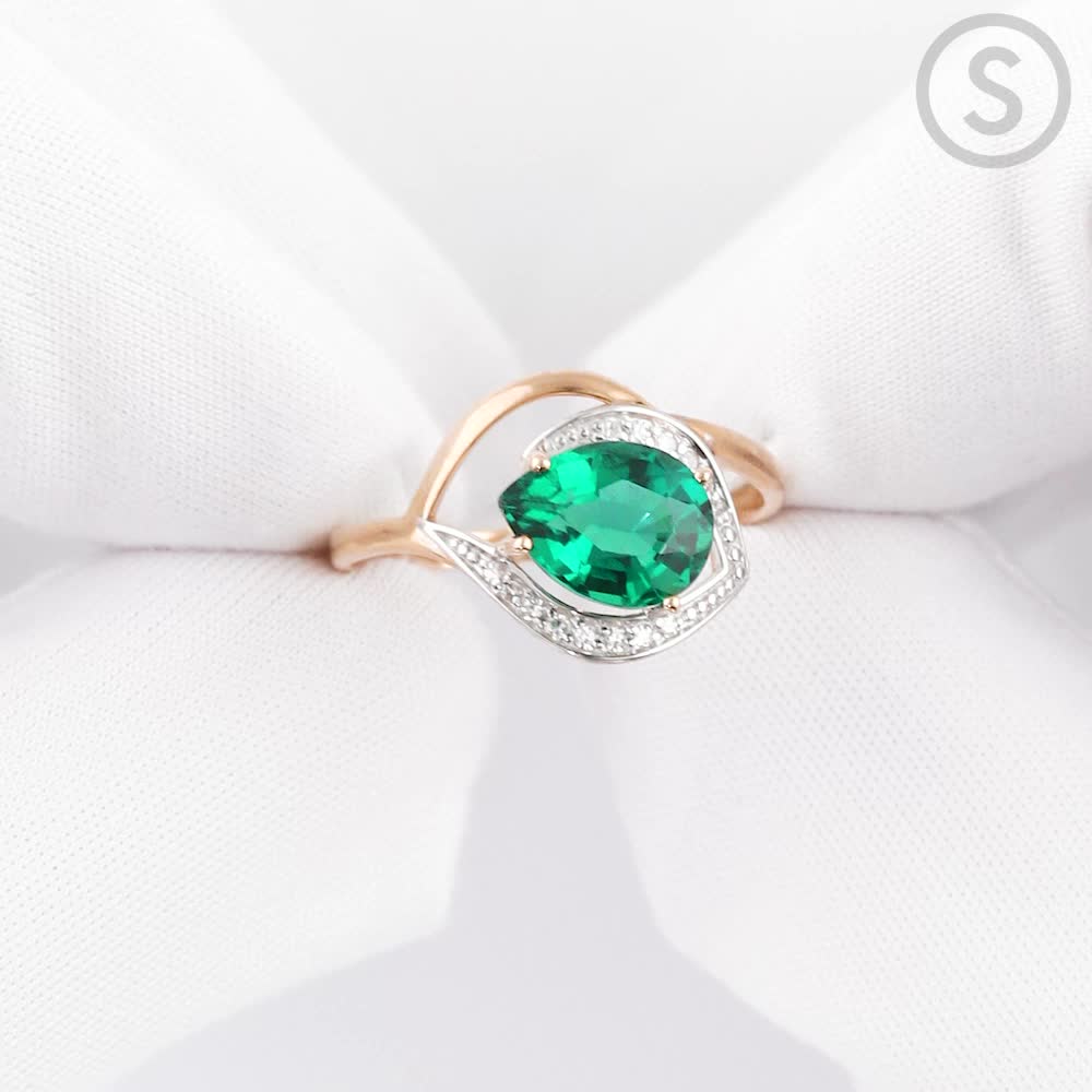Кольцо с 1 гидротермальным изумрудом, 0.995 карат, тип огранки Б;
