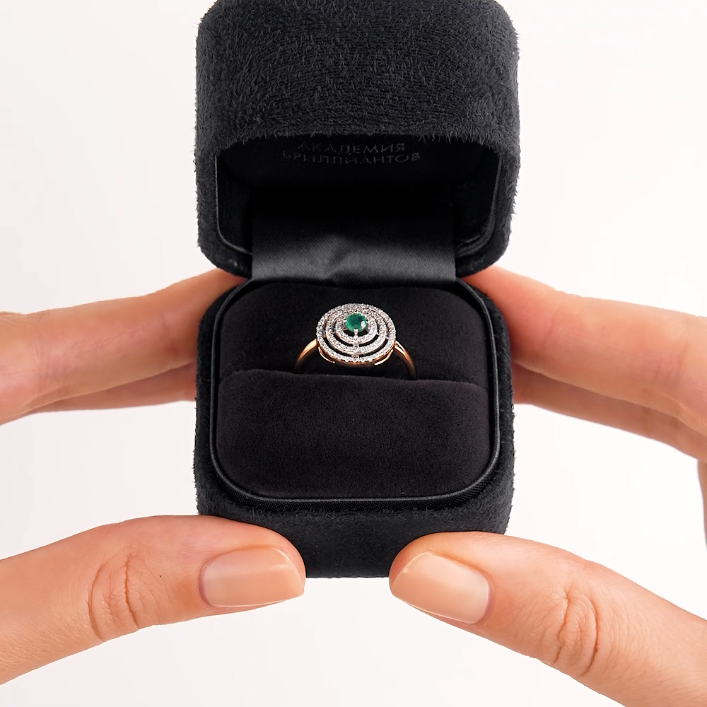 Золотое кольцо с бриллиантами природными и изумрудом природным
