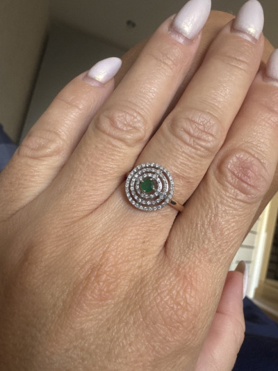 Красивое колечко на каждый день. Но нужно заказывать парочку на выбор мне олно пришло с очень бледным и прозрачным изумрудом, а второе с нормальным. Девочка консультант очень помогла