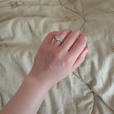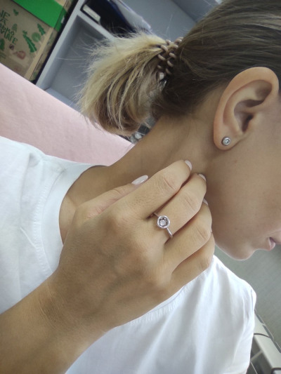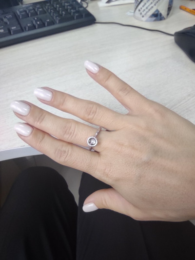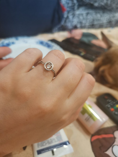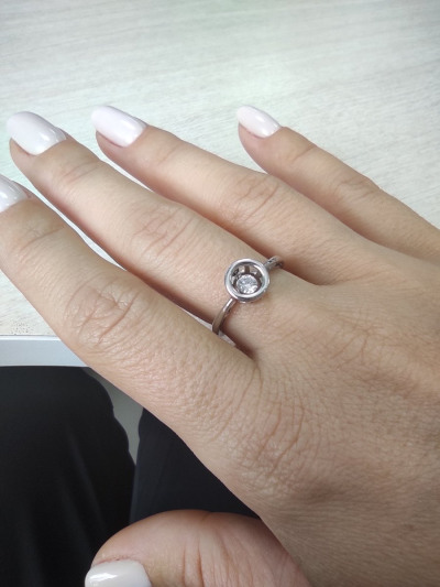 Очень красивое, стильное, изящное кольцо. Танцующий камешек сверкает на солнце и постоянно играет под разными углами. Подарок дочке очень понравился.
