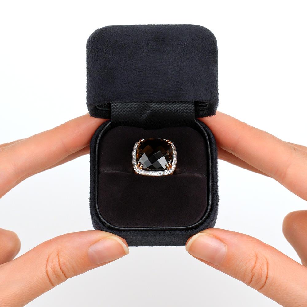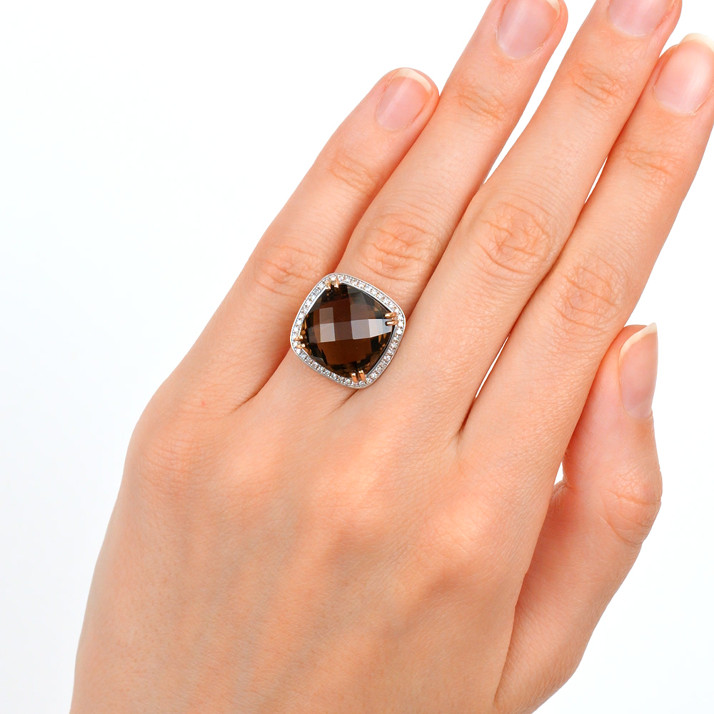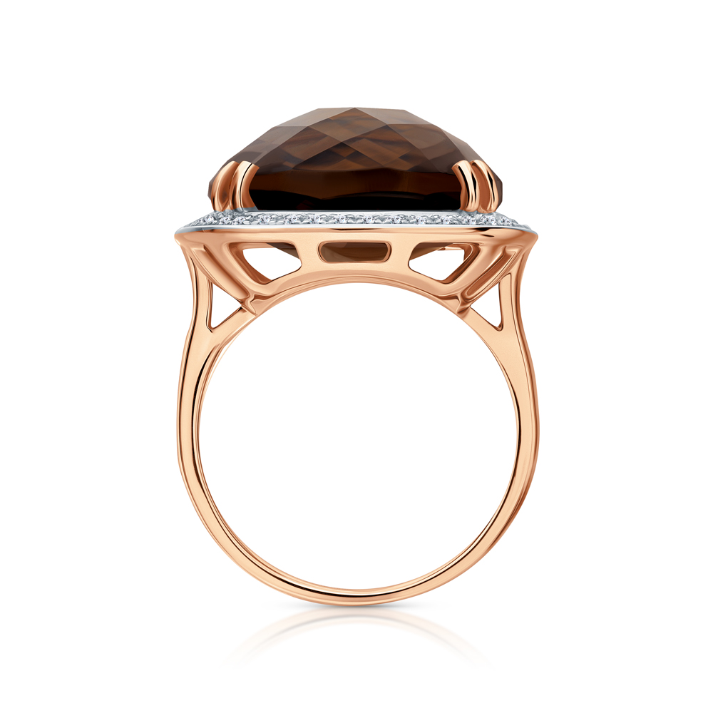 Золотое кольцо с бриллиантами природными и кварцами дымчатыми природными