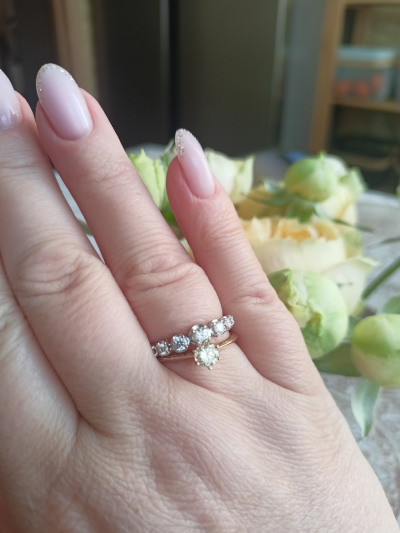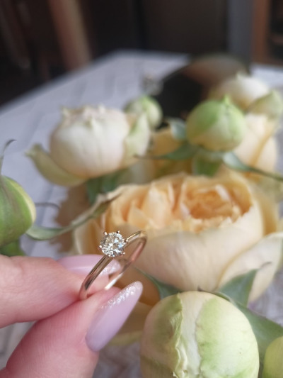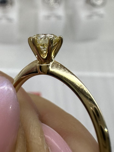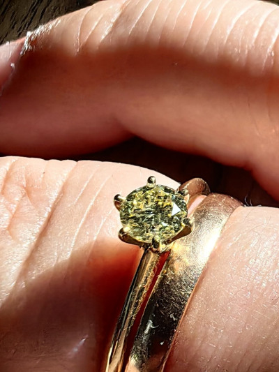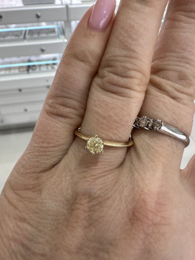 Желтый бриллиант в желтом золоте - даже не мечтала , но увидела в каталоге- влюбилась, перезаказывала 3 раза, не решалась из-за цены. Но в марте 2024 Санлайт всем женщинам подарок сделал - доп.50% скидка на 2 дня. И вот этот солнечный камень мой🥰. Конечно, есть включения😳 и цвет не очень яркий🤷♀️, но камень больше заявленого - 0,475ct! И очень хорошей огранки и полировки. Скромный дизайн шинки не отвлекает от бриллианта, 2гр золота.