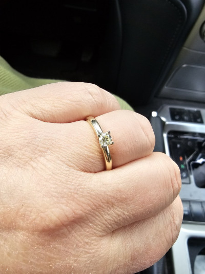 Кольцо потрясающее, довольно большой сияющий светло-желтый бриллиант, минималистичный дизайн.