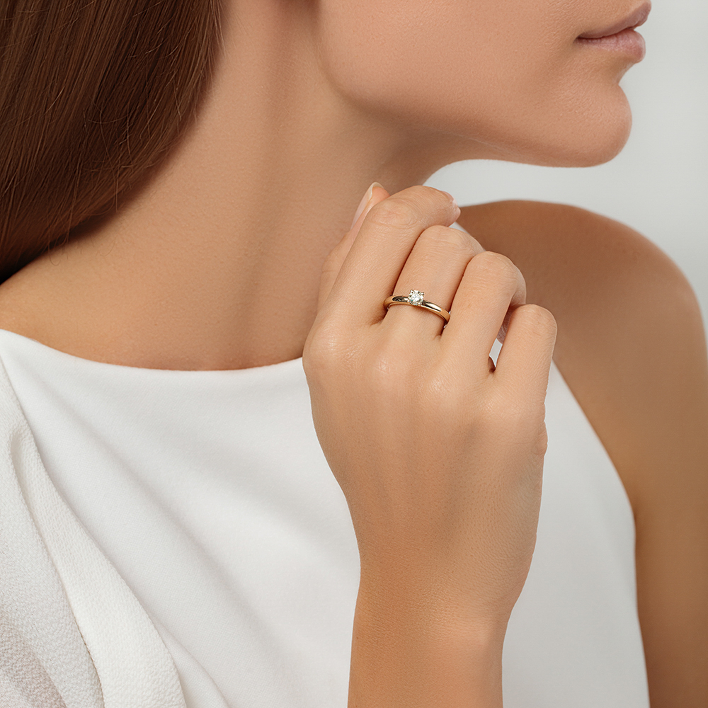 Кольцо с 1 бриллиантом желтым природным, 0.31 карат, огранка круг 57 граней, цвет 8-5, чистота 7, тип огранки А;