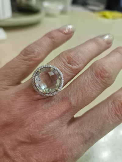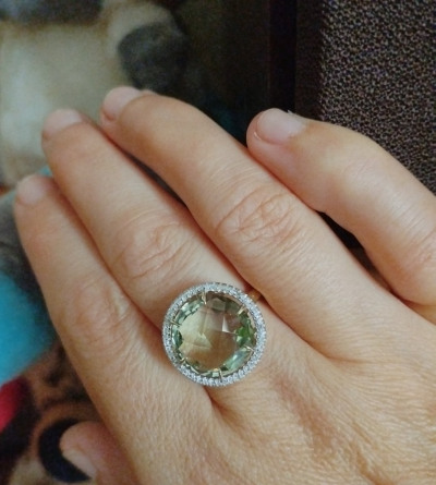 Очень красивое кольцо с празиолитом, просто шикарное! Носится удобно, радует каждый день.