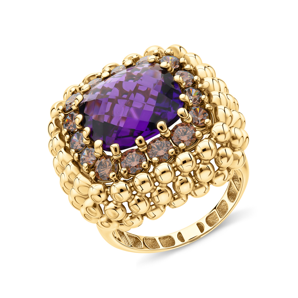 Золотое кольцо с фианитами и аметистом