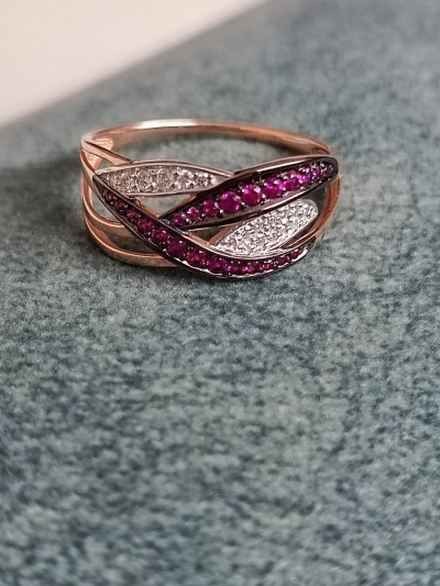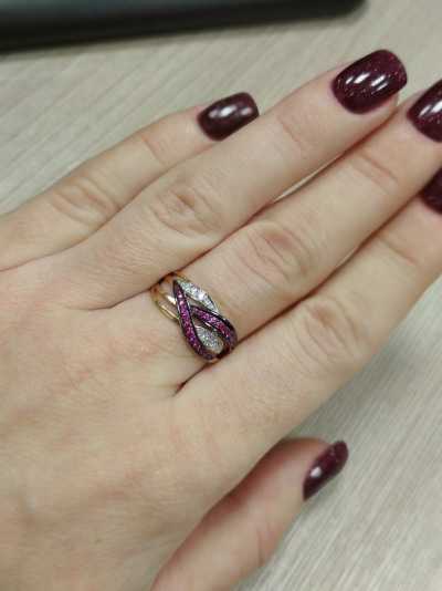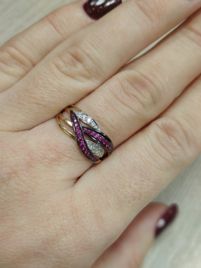 Золотое кольцо с бриллиантами природными и рубинами природными