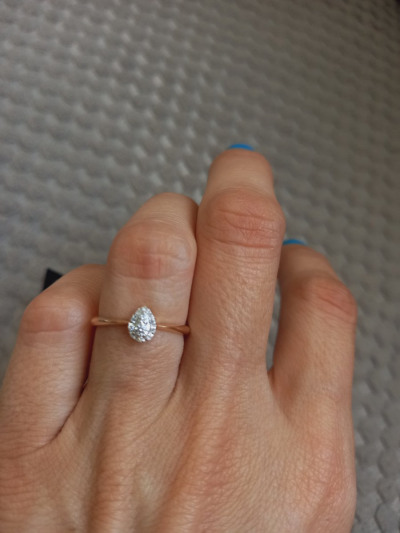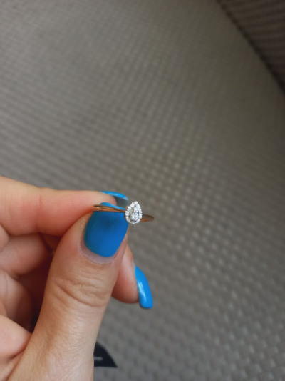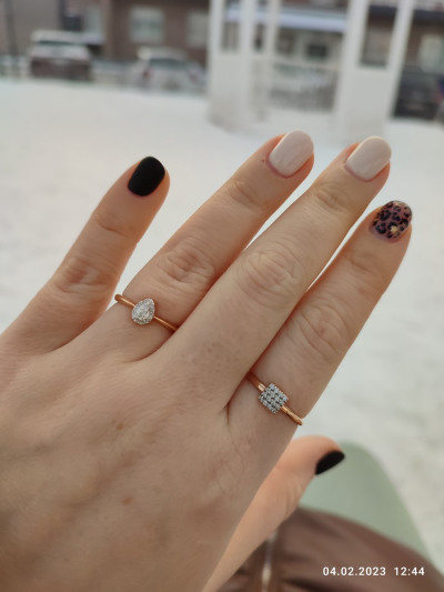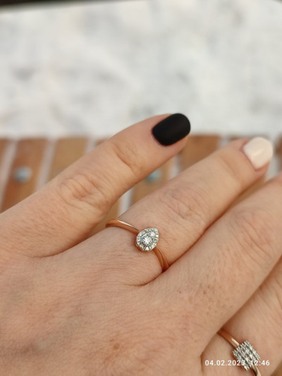 Нежное, сверкающее, завораживающее колечко в форме капли или сердечка! Россыпь камней переливается и сияет. Очень понравилось!