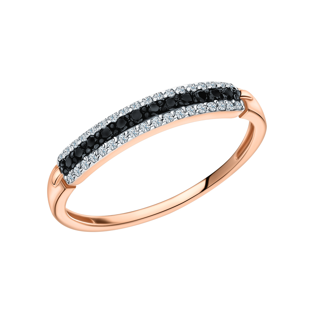 Золотое кольцо с бриллиантами и бриллиантами чёрными природными