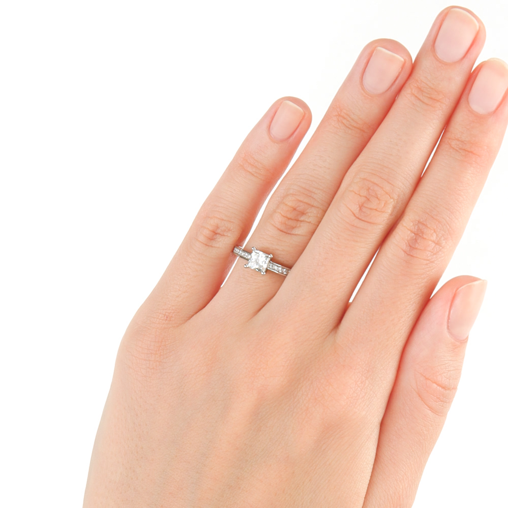 Кольцо с 1 бриллиантом, 0.7 карат, огранка принцесса 65 граней, цвет 4, чистота 6, тип огранки А;