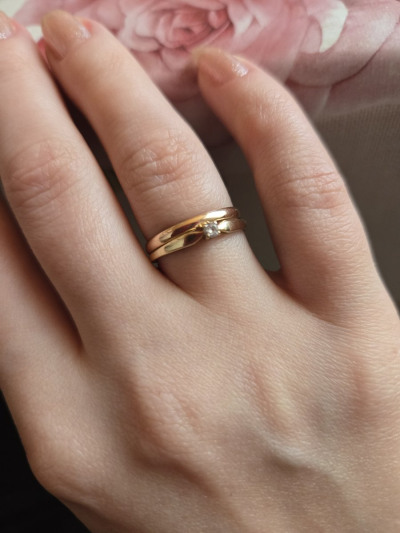 Хорошее кольцо. Покупали на свадьбу. У мужа чуть пошире выбрали, тоже в Санлайте. Удобно, ношу как в паре с помоволочным, так и самостоятельно