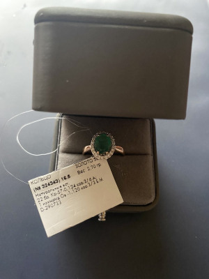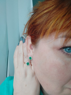Красивое колечко, купила к комплектным пусетам, смотрится в комплекте очень стильно и дорого. Качество и каратность изумруда соответствует заявленному. Рекомендую к покупке.