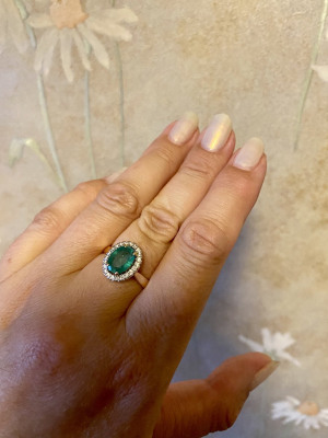Прекрасное колечко с большим, натуральным изумрудом в обрамлении сверкающих бриллиантов! Красиво и лаконично смотрится на руке, сверкает и переливается! Классический дизайн, ничего лишнего! Спасибо Sunlight за прекрасное украшение!