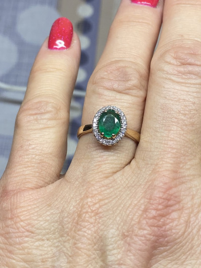 Золотое кольцо с бриллиантами природными и изумрудом природным