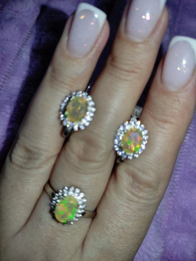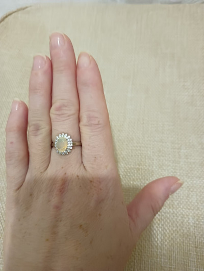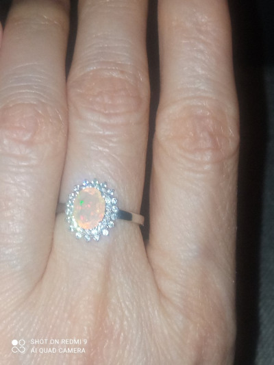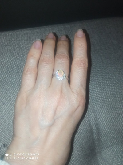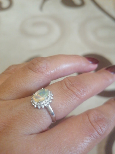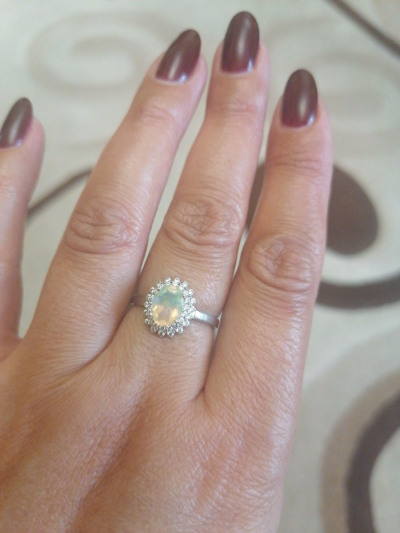 Красивое кольцо, сверкающее. Опал переливается. Вживую смотрится гораздо лучше.