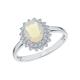 Нежное колечко с космическим белым опалом. Камень переливается разноцветными всполохами в окружении фианитов. Камера не передаёт полностью красоту камня.