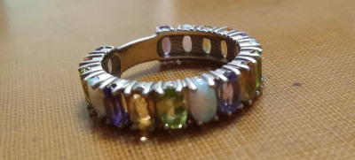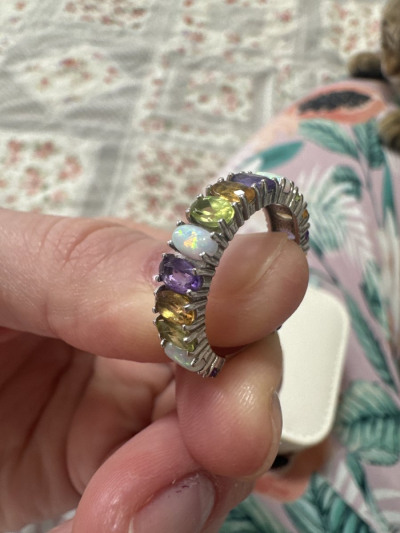 Серебряное кольцо с цитринами природными, опалами синтетическими, аметистами природными и хризолитами природными