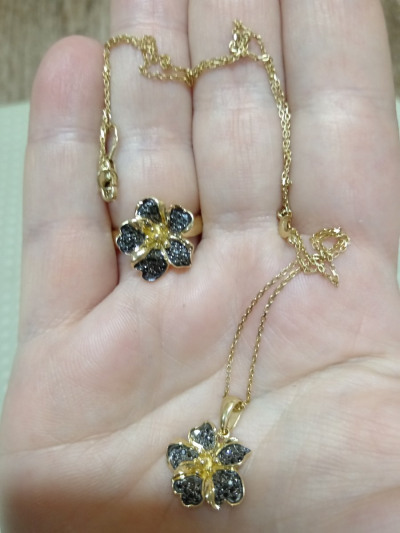 Моей жене понравилось, черные бриллианты и желтое золото, пожизненная гарантия! Коробочку большую красную дали в подарок!