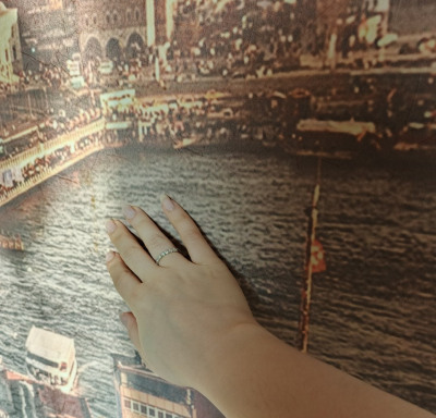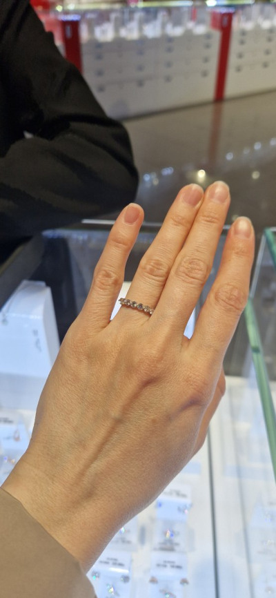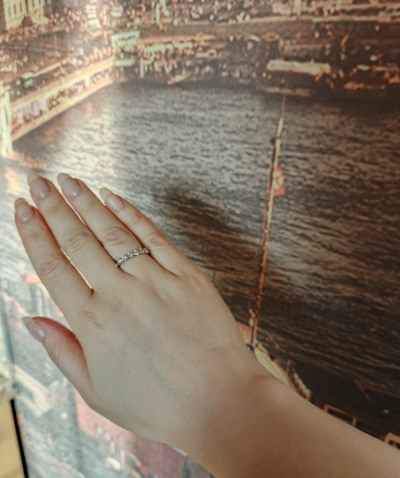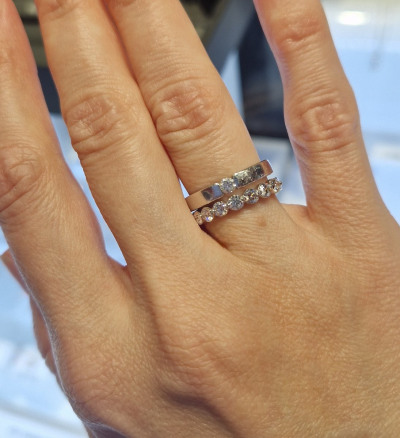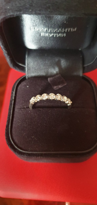 Очень хотела кольцо-компаньон к обручальному и непременно с крупной дорожкой бриллиантов. Это кольцо просто влюбило в себя, подошло мне идеально! Носить можно и сольно - оно нежное, необычное за счёт круглой формы крепления камней. Бриллианты все одного размера, крупные, очень яркие. На солнце сияют нереально)