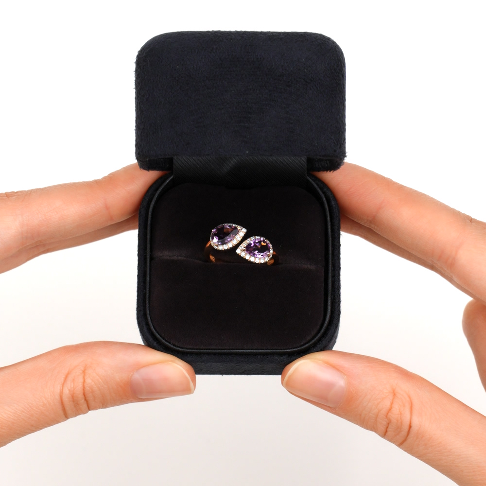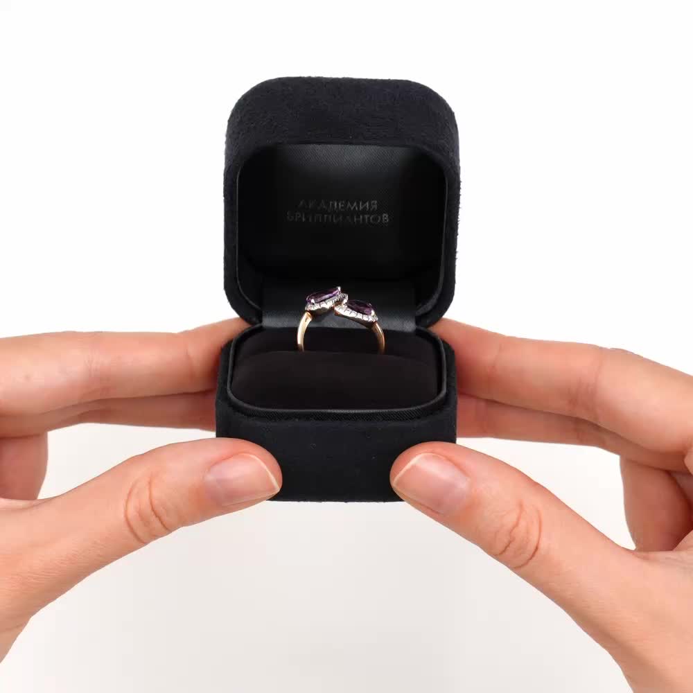 Золотое кольцо с бриллиантами природными и аметистами природными