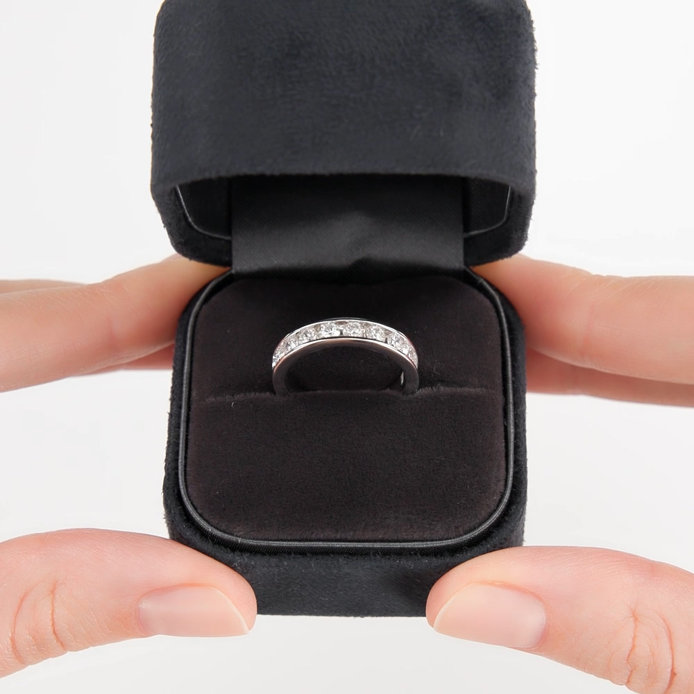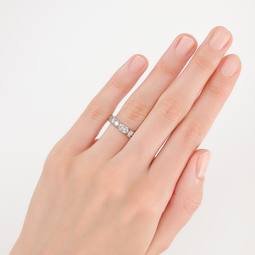 Кольцо искрится радугой бриллиантовых бликов, удобно сидит, красиво смотрится на пальце. Я ношу не как обручальное, а как бриллиантовую дорожку на каждый день. Мне досталось каратностью 0.91, с хорошим весом. Нигде больше природных бриллиантов за такую стоимость нет. Смотрится дороже, чем стоит.