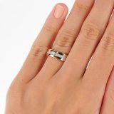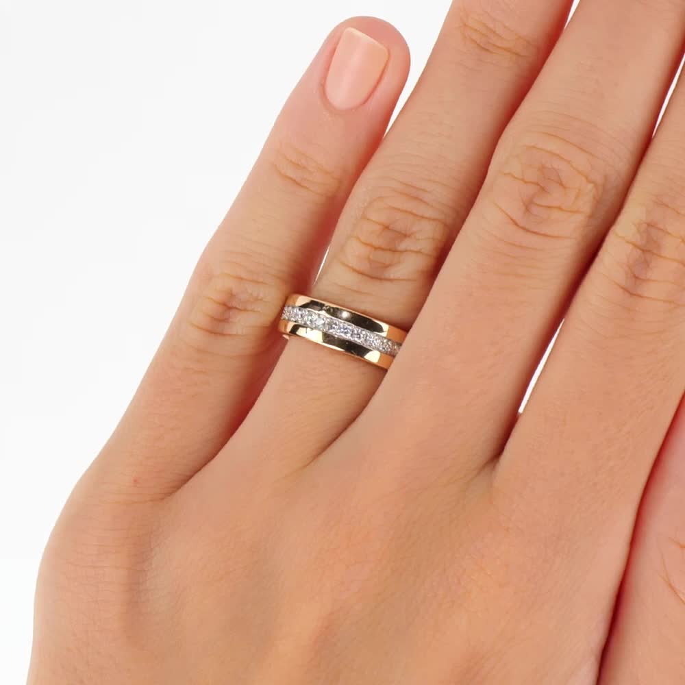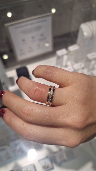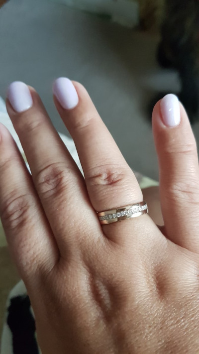 Заказывала два кольца, это и с гранями. Это выиграло, не только из-за камней, комфортнее и весомее сидит на пальчике! Взяли как обручальное кольцо на свадьбу.
