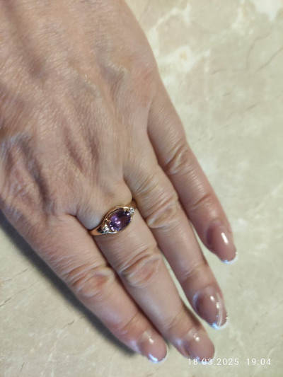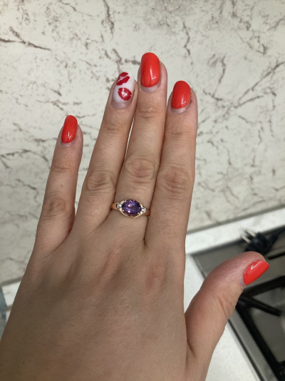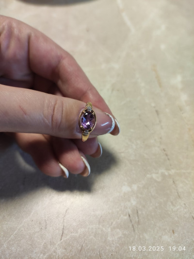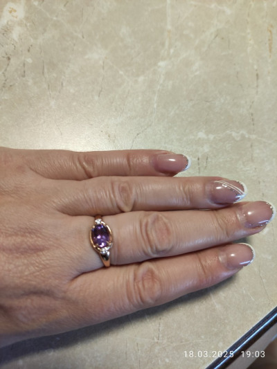 Представляем вам золотое кольцо с фианитами и аметистом. Это изящное и нежное кольцо, которое станет прекрасным украшением для вашей руки. В центре кольца расположен крупный аметист в типе огранки Б, который придает ему особый шарм и привлекательность. Фианиты, расположенные по бокам, добавляют блеска и элегантности этому украшению. Кольцо выполнено из розового золота 585 пробы, что придает ему особую изысканность. Это кольцо подойдет как для повседневного ношения, так и для особых случаев. Оно станет прекрасным подарком для себя или для особенного человека в вашей жизни. Позвольте этому кольцу подчеркнуть вашу индивидуальность и добавить нотку роскоши к вашему образу.