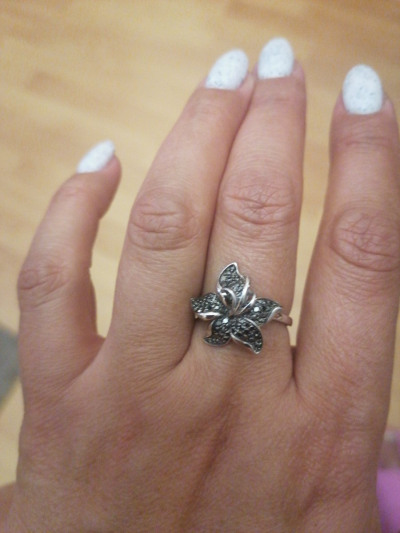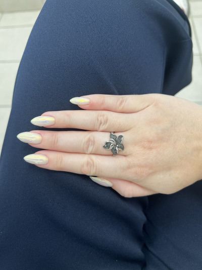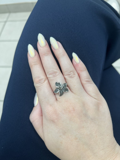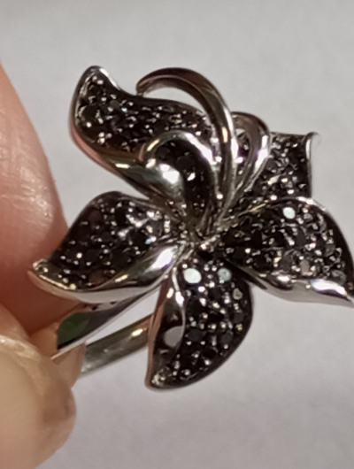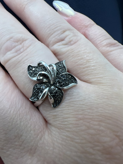 Очень красивое кольцо-цветок в виде черной лилии 🌺, приобрела гарнитур с сережками и подвеской 😍