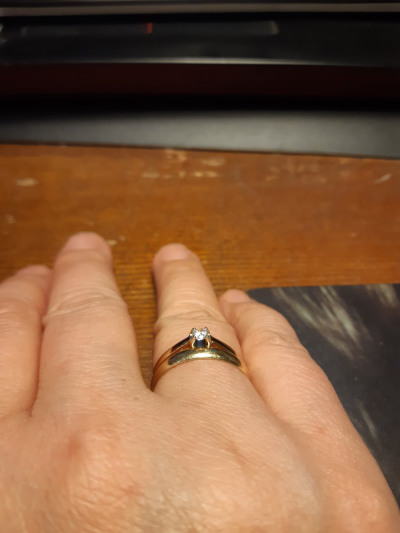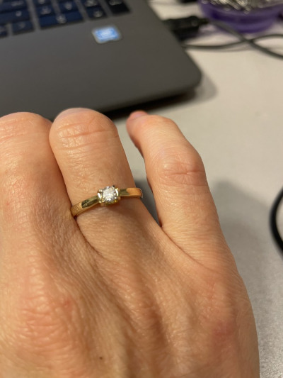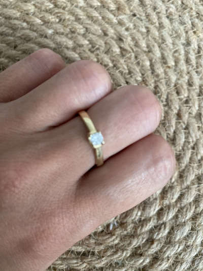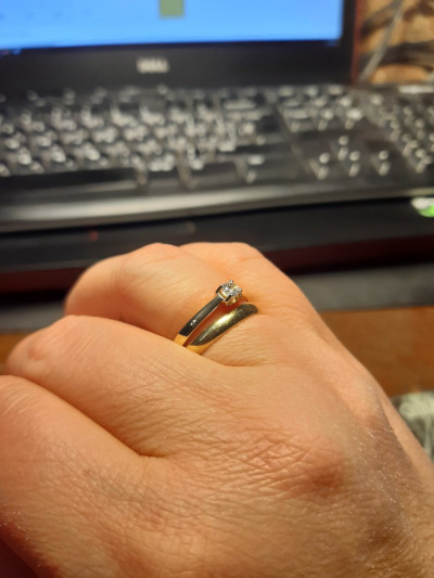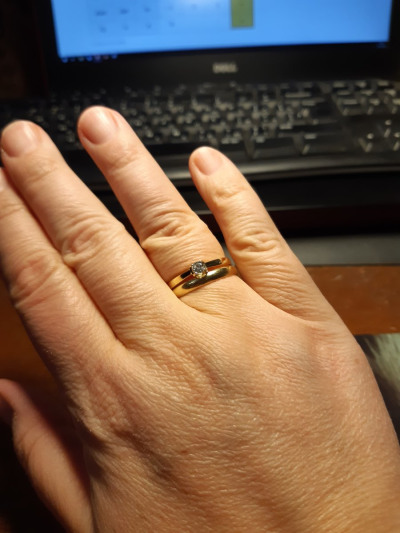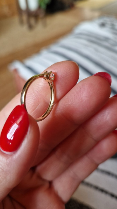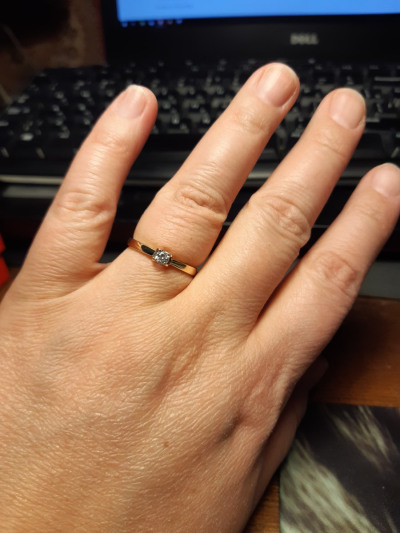 Кольцо сделано очень приятно, восхитительное жёлтое золото. Но камень маловат - одно колечко на пальце выглядит неубедительно. Его надо сочетать с кольцом-дорожкой или с обручальным, как я и сделала. Но сейчас я выбрала бы такое же по смыслу и цене кольцо, но с более крупным фианитом.