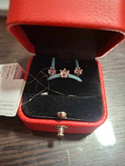 Купила ранее серьги. Через некоторое время решила, что надо Кольцо в комплект. Серебро с голубой эмалью и розовым камнем смотрится мило нежно..