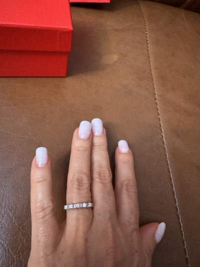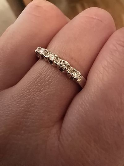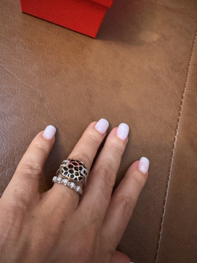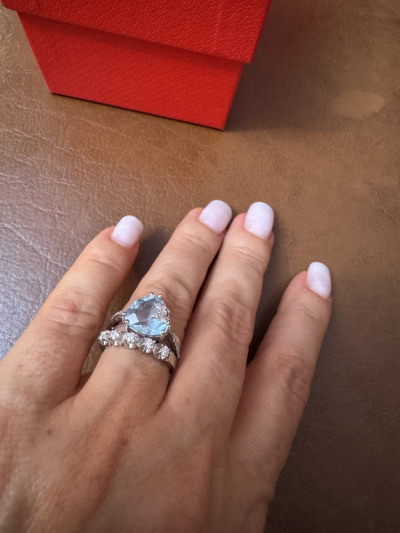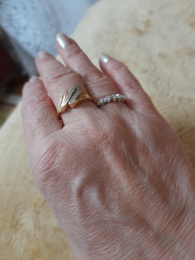 Кольцу уже несколько лет. Это идеальный вариант для составления сетов! Оно прекрасно дополняет как обручальное кольцо, так и любое другое. Размер этого кольца позволяет его одевать практически с любым.