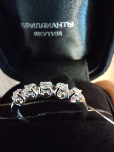 Кольцо с 5 бриллиантами природными, 0.18 карат, огранка круг 57 граней, цвет 3, чистота 6, тип огранки А;