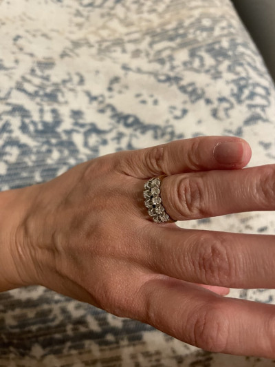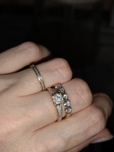 Красивое кольцо дорожка в лимонном золоте с бриллиантами. Можно носить несколько колец одновременно. Спасибо супругу за коллекцию к новому году.
