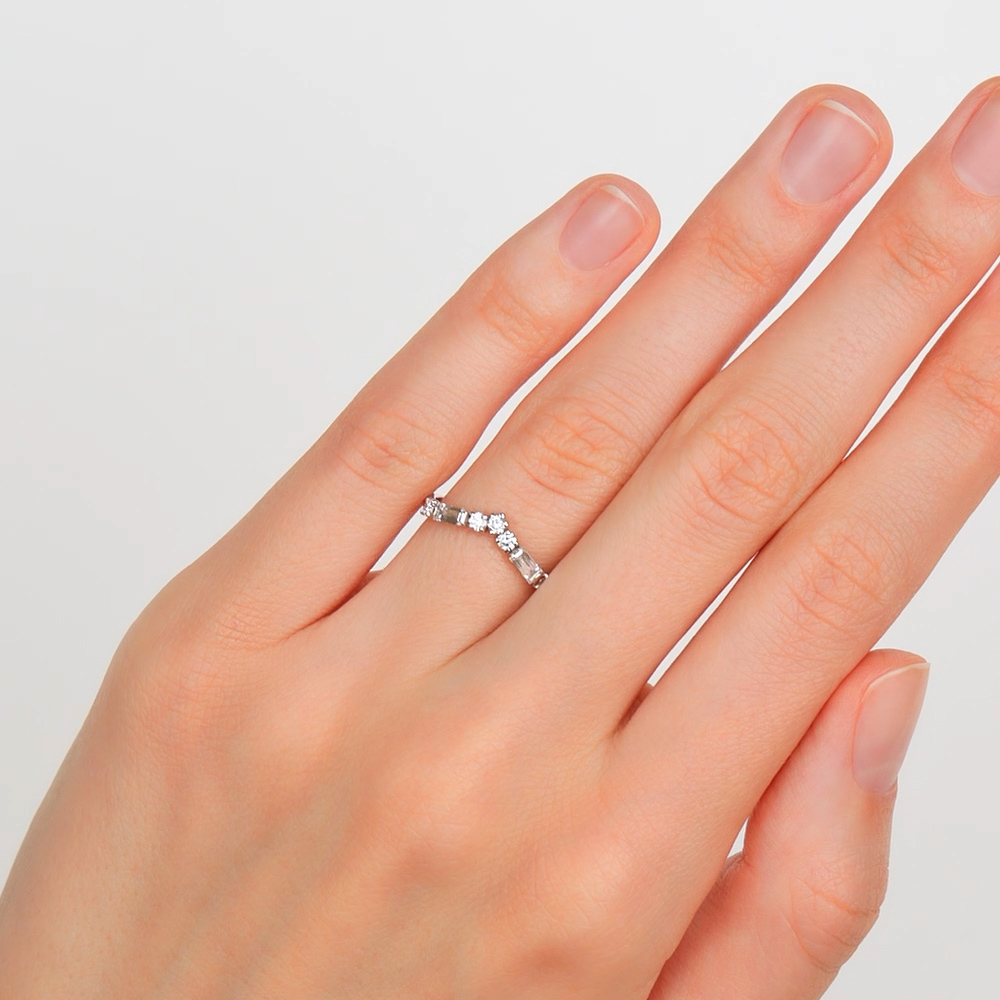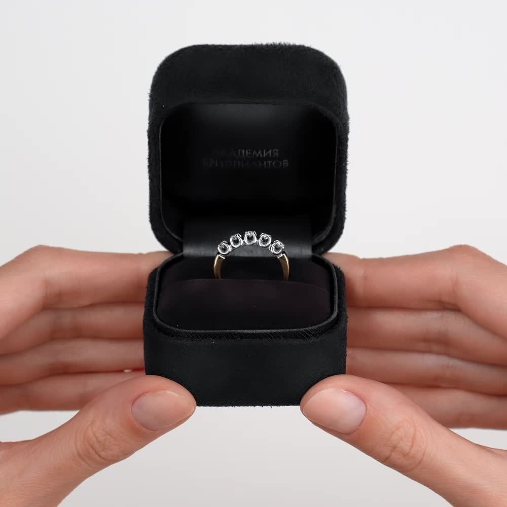 Кольцо украшено 5 бриллиантами общим весом 0.192 карата, которые притягивают взгляд своим сиянием. 57 граней обеспечивают максимальное переливание света, создавая эффектное визуальное впечатление. Характеристики камней: