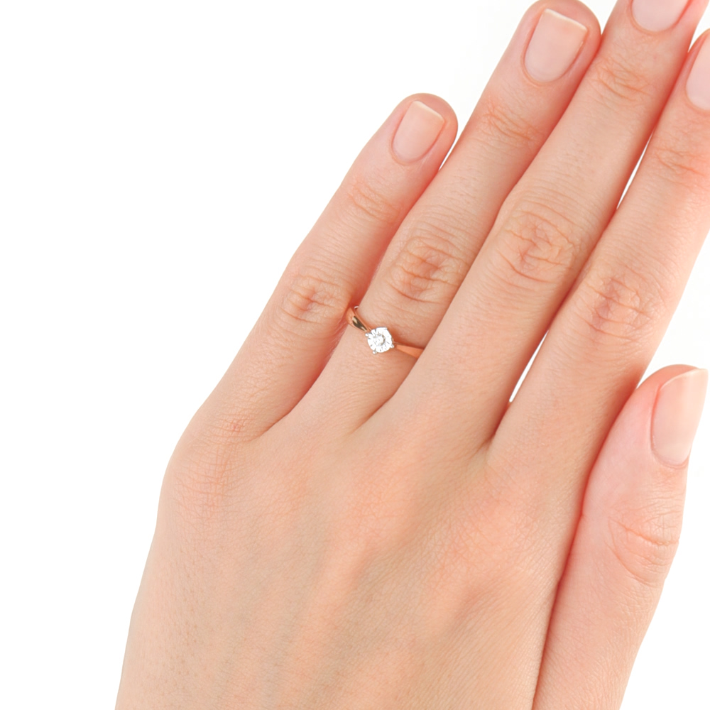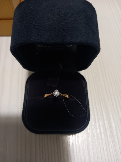 Кольцо с 1 бриллиантом природным, 0.03 карат, огранка круг 57 граней, цвет 3, чистота 6, тип огранки А;