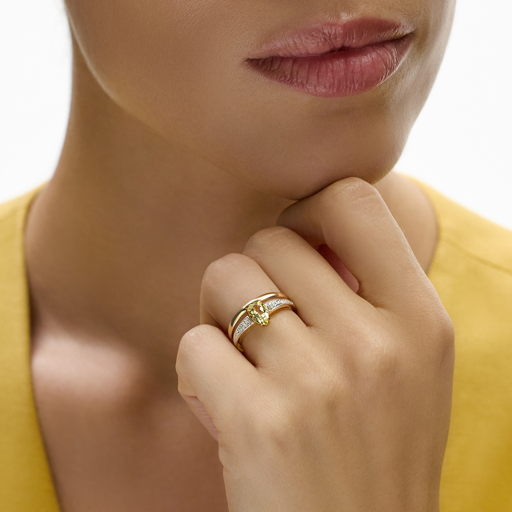 Золотое кольцо с лимонным кварцем и бриллиантами