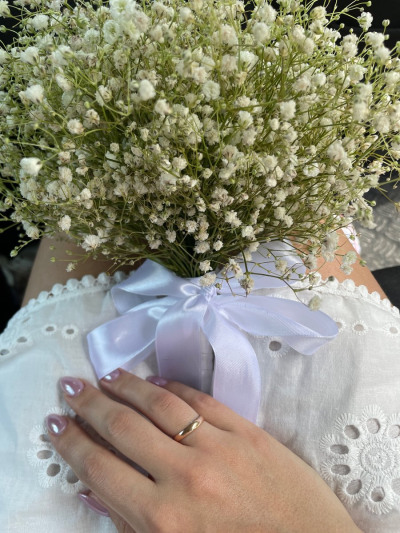 Обручалку тоненькая и лёгкая, ничего лишнего)