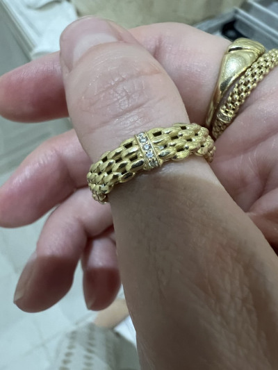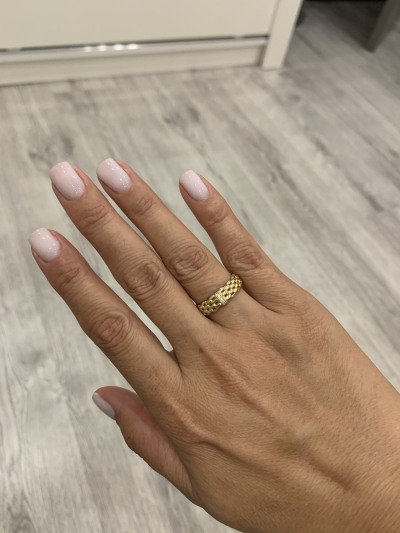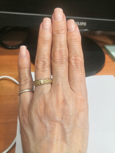 Я очень долго подбирала размер. Спасибо продавцам в Истре, подсказали мне. Кольцо смотрится очень красиво. Очень очень красиво. Я очень довольна покупкой.