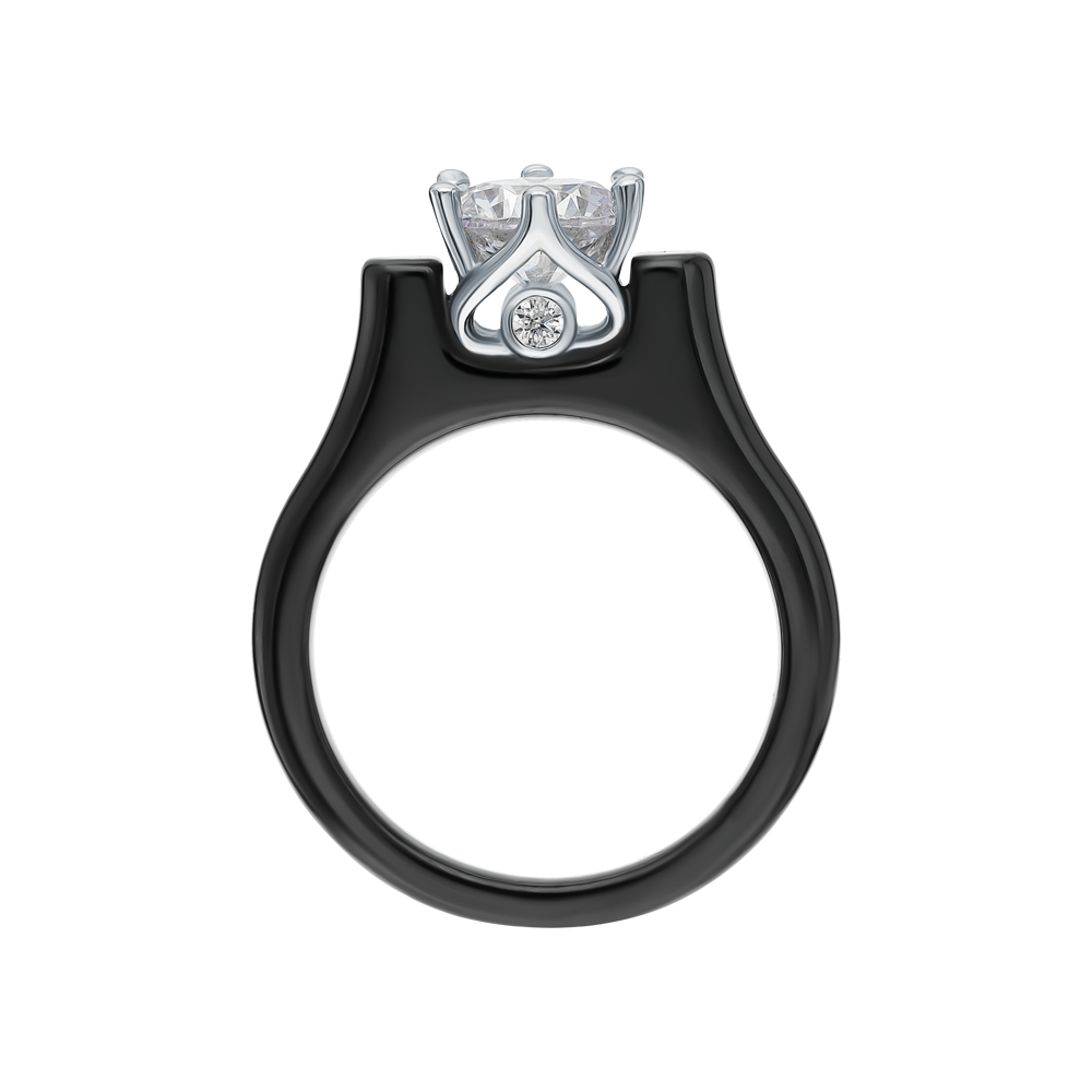 Керамическое кольцо с фианитами и керамикой